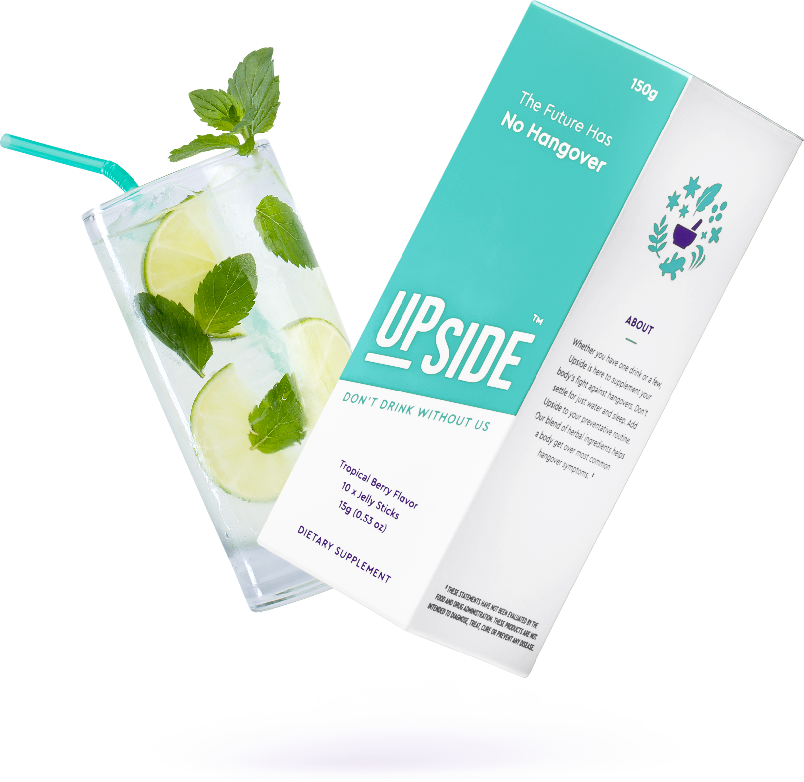 That's why we created Upside. A great tasting jelly supplement with all of the herbal ingredients your body needs to counteract common hangover symptoms.